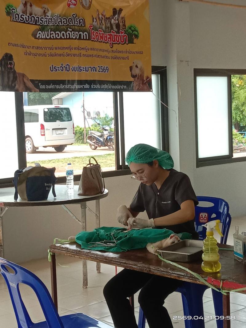 ปศุสัตว์จังหวัดนครพนมและปศุสัตว์อำเภอปลาปากพร้อมด้วยองค์การบริหารส่วนตำบลมหาชัยออกหน่วยบริการทำหมันเพื่อลดจำนวนประชากรสุนัขและแมว ประจำปี 2569
