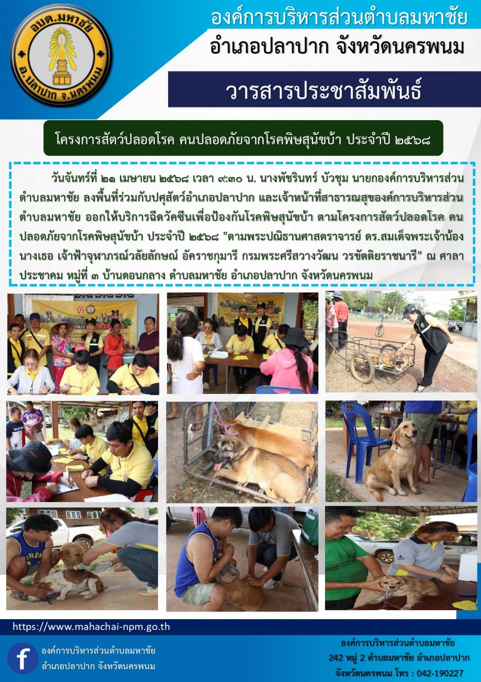 โครงการสัตว์ปลอดโรค คนปลอดภัยจากโรคพิษสุนัขบ้า ประจำปี 2568 [21 เมษายน 2568]