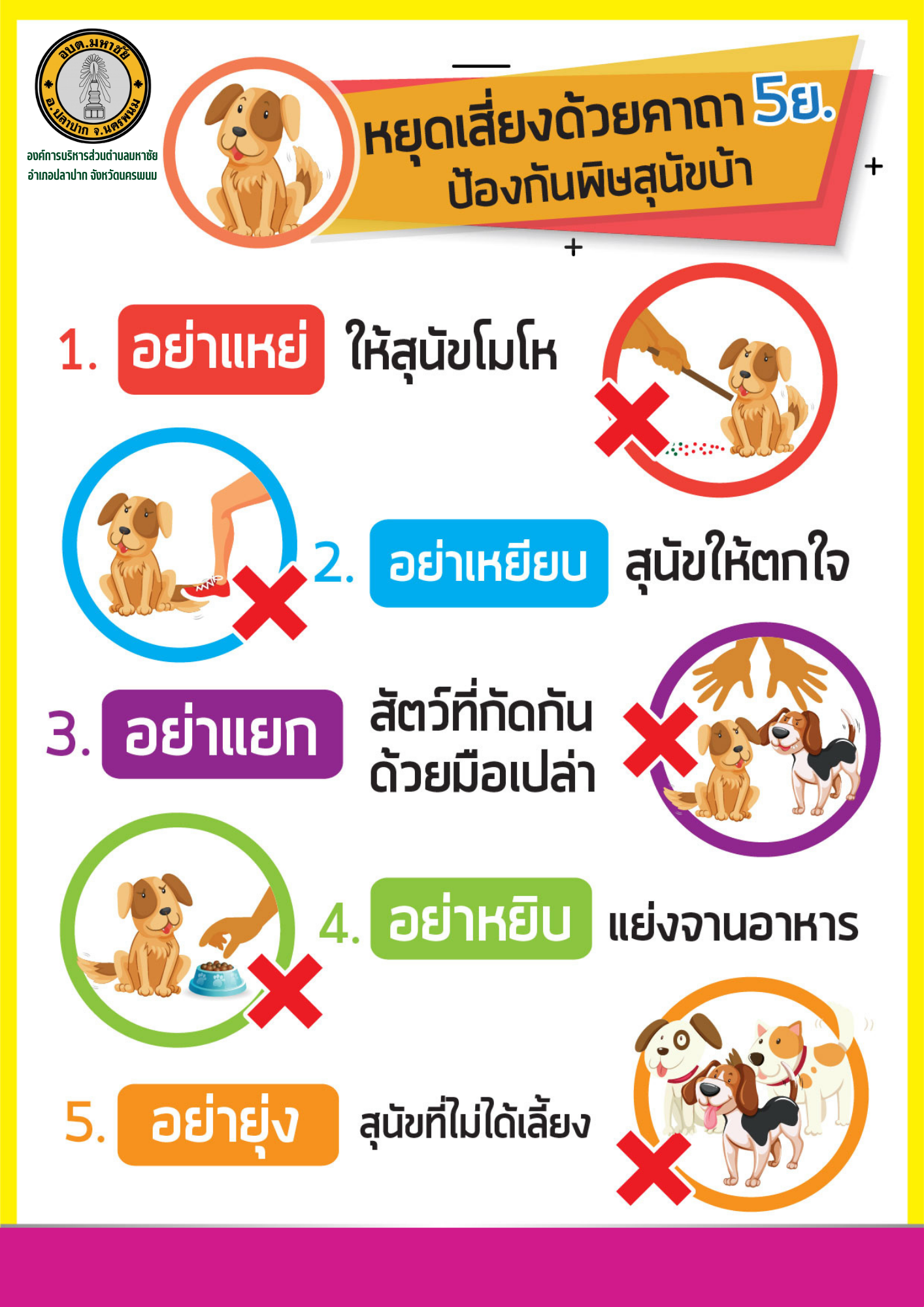 ป้ายประชาสัมพันธ์หยุดเสี่ยงด้วยคาถาป้องกันพิษสุนัขบ้า คาถา 5 ย [18 เมษายน 2568]